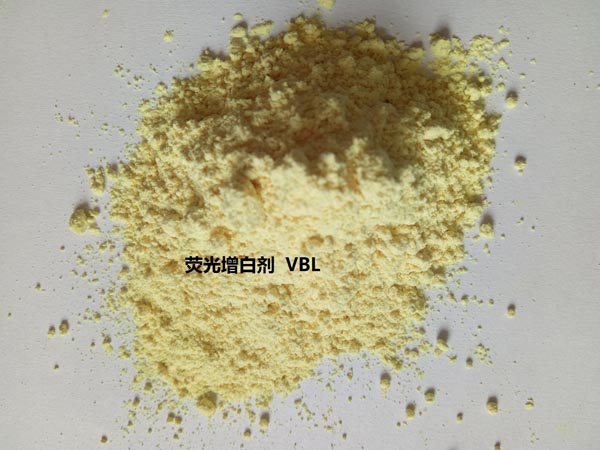3.性能及特点:荧光增白剂VBL是双(三嗪氨基)型荧光增白剂的典型代表产品,可溶于80倍的软水中,呈阴离子性质,耐酸碱程度为pH=6~11,染浴pH以8~9为宜。在酸性溶液中,因酸性加强使荧光逐渐减弱而泛黄。可耐硬水至300ppm,耐游离氯至0.25%,不耐铜、铁等金属离子,对保险粉稳定,但不耐高温烘培。它可与阴离子表面活性剂或染料、非离子表面活性剂、双氧水同浴使用。